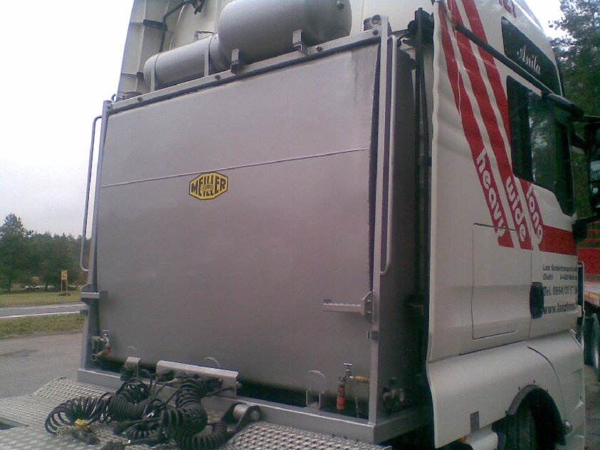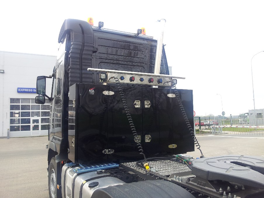 Montáž 1000L naftové nádrže za kabinu tahače včetně nádrže na vodu a adblue